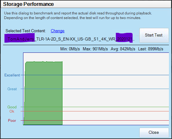 The content transfer rate may vary slightly during the test. If the content drops below GOOD on the graph further investigation into the NAS is indicated.